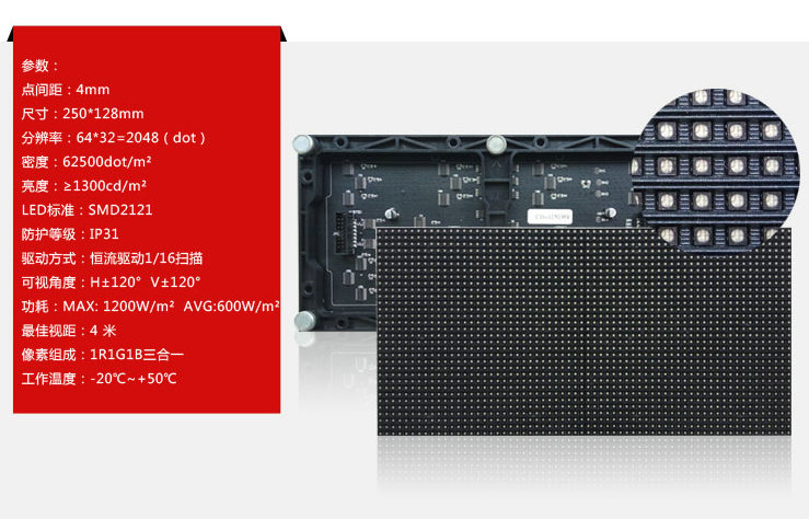 HR-P4 全彩LED顯示大屏無縫拼接、分辨率高,真實再現圖像 色彩均勻、對比度高,畫面清晰明銳 高精度的壓鑄鋁箱體,保證屏體平整無縫 無風扇設計,低溫運行,安靜無噪音 輕薄箱體,便于運輸及裝卸 穩定,可靠性高,使用壽命長 支持前后維護,安裝更便捷